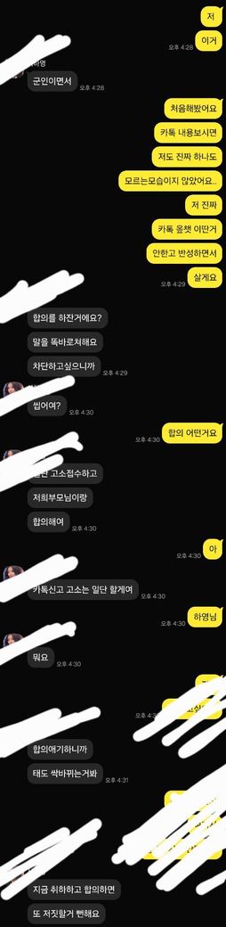 맞팔하자는 내용에서 상대방이 성적내용으로 이끌어가길래 순간 혹해서 오픈채팅방에서 키스,관계,자취방이라는 단어를 보냈고 개인톡으로 오빠야,옾챗(인원)이야라고 적게 시키며 유인당한뒤 저렇게 고소협박 문자가 왔습니다