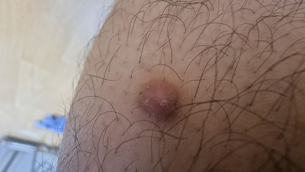 질문하신 내용에 대하여 아래와 같이 답변 드립니다.사진으로 보았을때 종기로 보입니다.