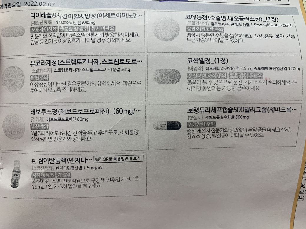 감기약이 처방된 것으로 보입니다.