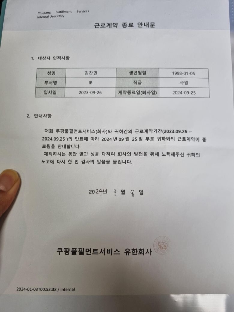 안녕하세요? 쿠팡 풀필먼트 계약직 다니다가