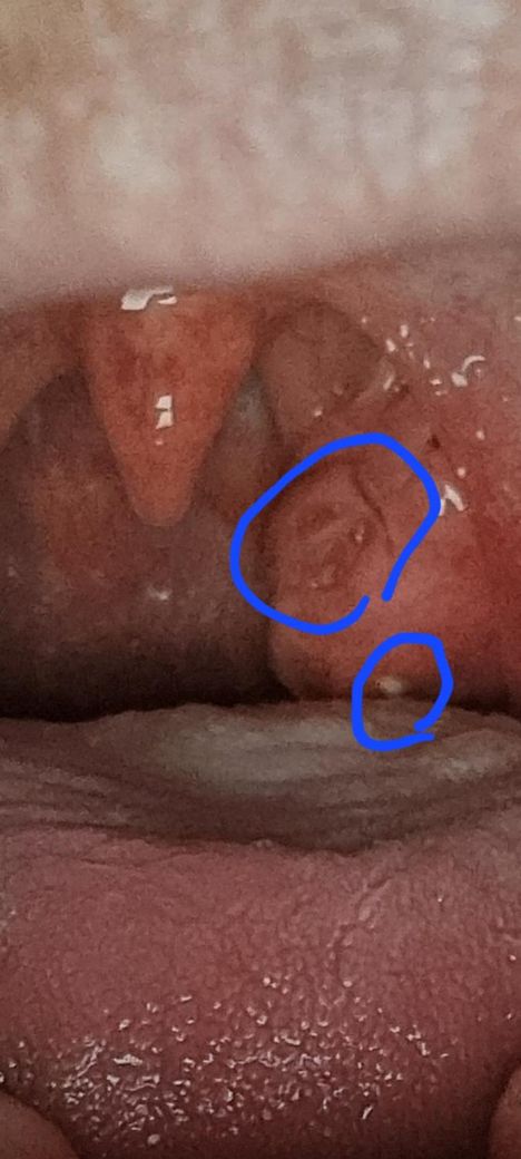 혀 밑에랑 편도에 하얗고 노랗게 뭔가 보이는데 뭘까요?