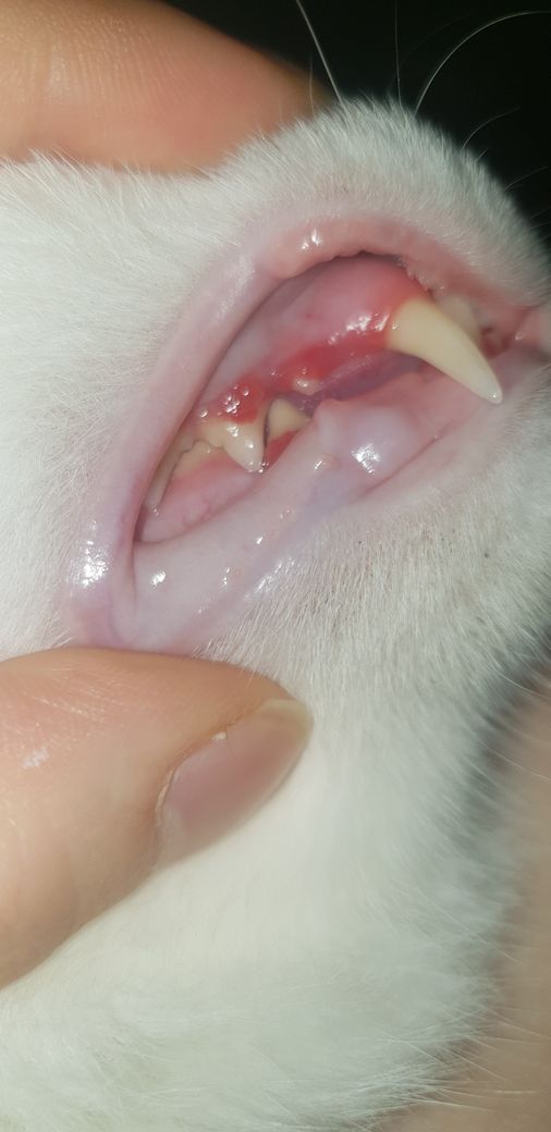고양이 양치해주다보니 치아빨갛고 물집이있는데 뭘까요?