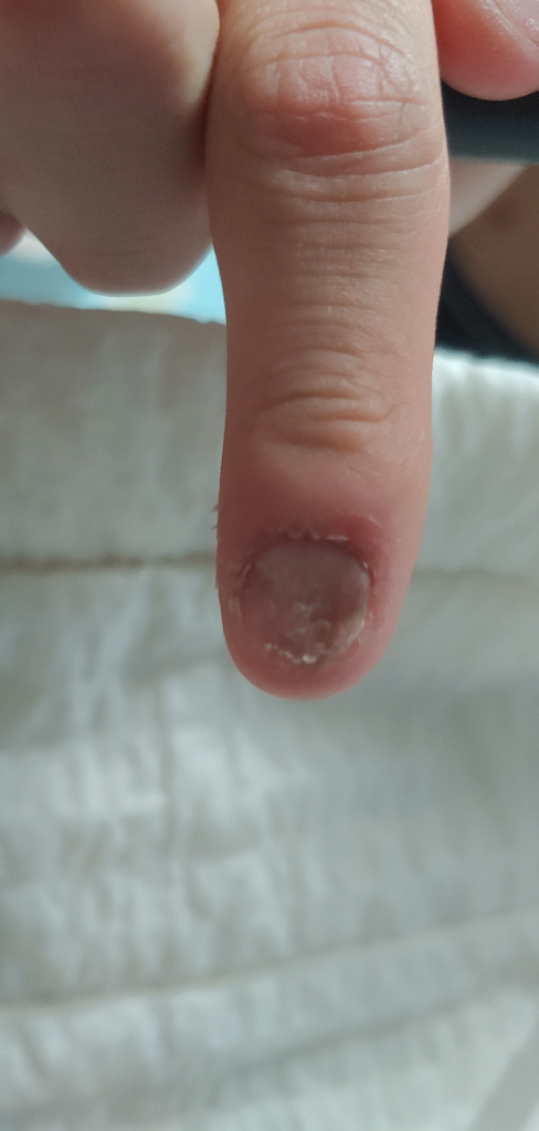 올려주신 사진으로 보아 손톱이형성증이 의심이 됩니다. 대부분의 경우 반복적인 외부적 자극, 외상이 원인이 됩니다.