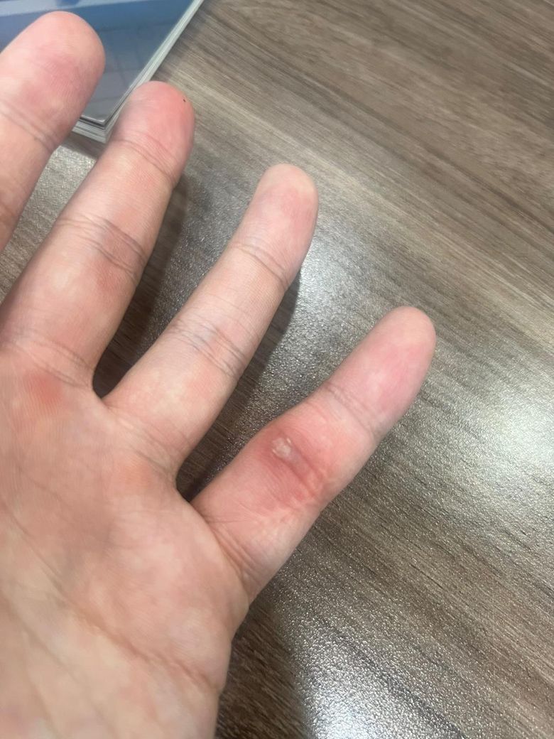 새끼손가락 꿰맨 부위 옆 통증이 심합니다.