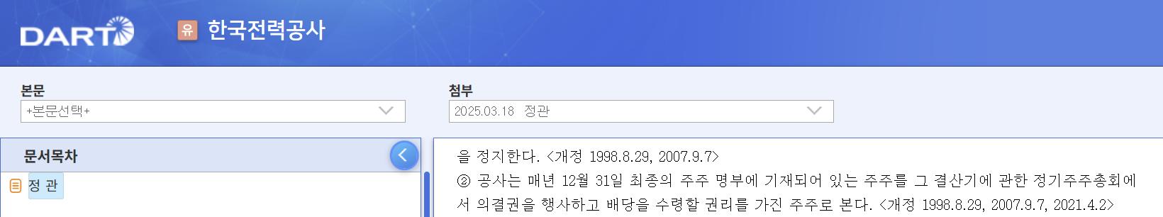 한국전력 배당기준일 전자공시관련 공시없이 기준일이가능한지