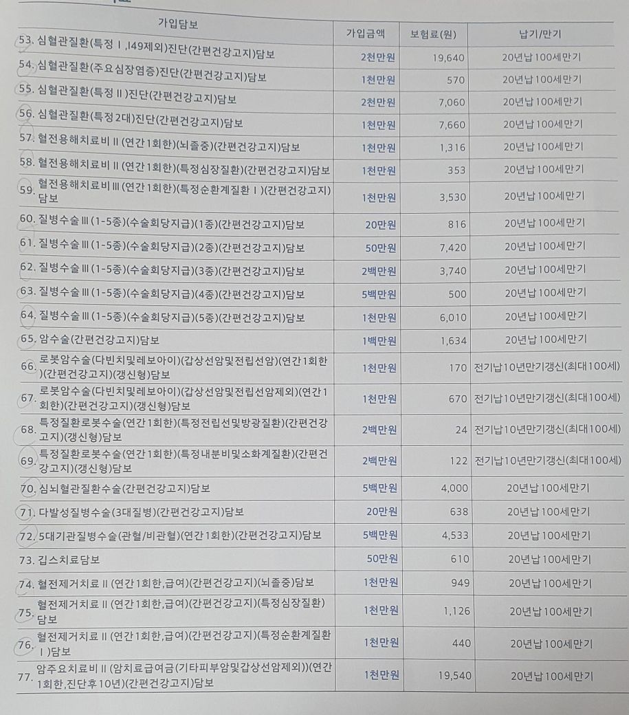 아버지가 고혈압이 있으시고, 본인 최근 건강검진에서 혈압 유의하라고해서 그부분이 걱정이라 심혈관,뇌혈관질환을 2천씩 넣었습니다.