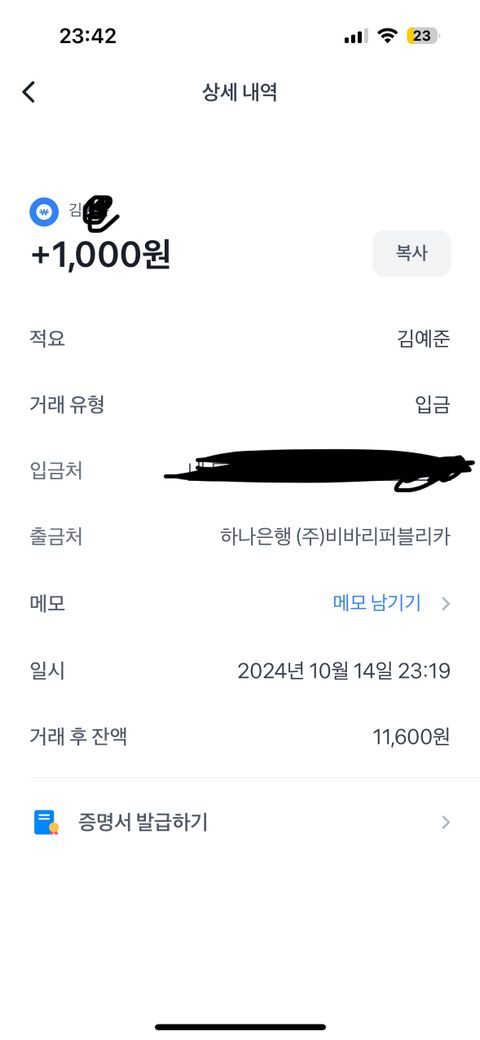 토스뱅크로 모르는 이름으로 천원이 입금되었습니다. 하나은행 (주)비바리퍼블리카 란 곳입니다.