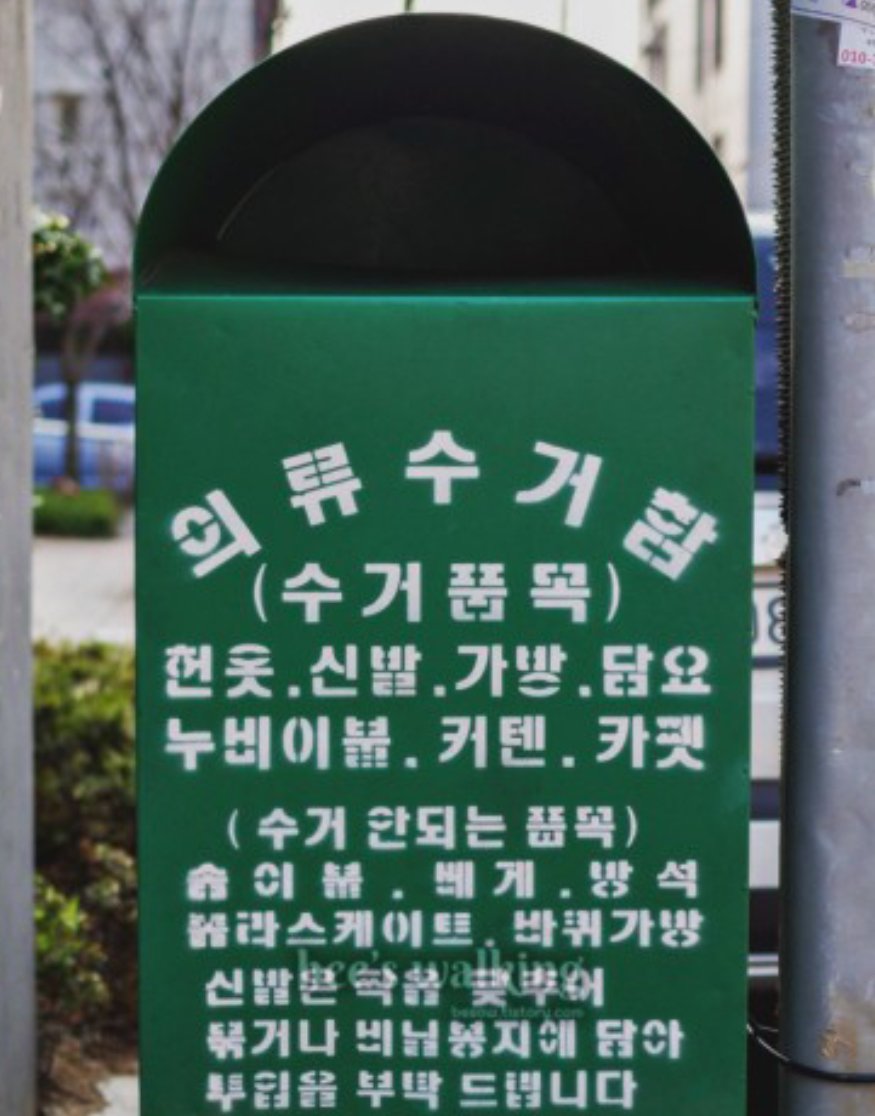 하지만 집앞 의류수거함에 버리려고 했는데 집 근처 의류수거함에 경고문으로 배게, 이불, 해진 신발은 넣지말라고 써있고