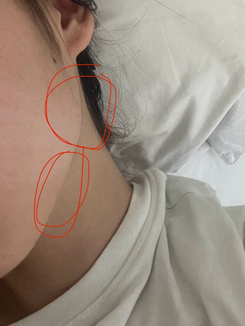 사진 첨부한 부위쪽이 손으로 만지면 좀 아픈데 병원에 가야할까요? 만지지 않을땐 약간 멍 한 ? 그 부위의 근육이 무언가 무거운 느낌입니다.