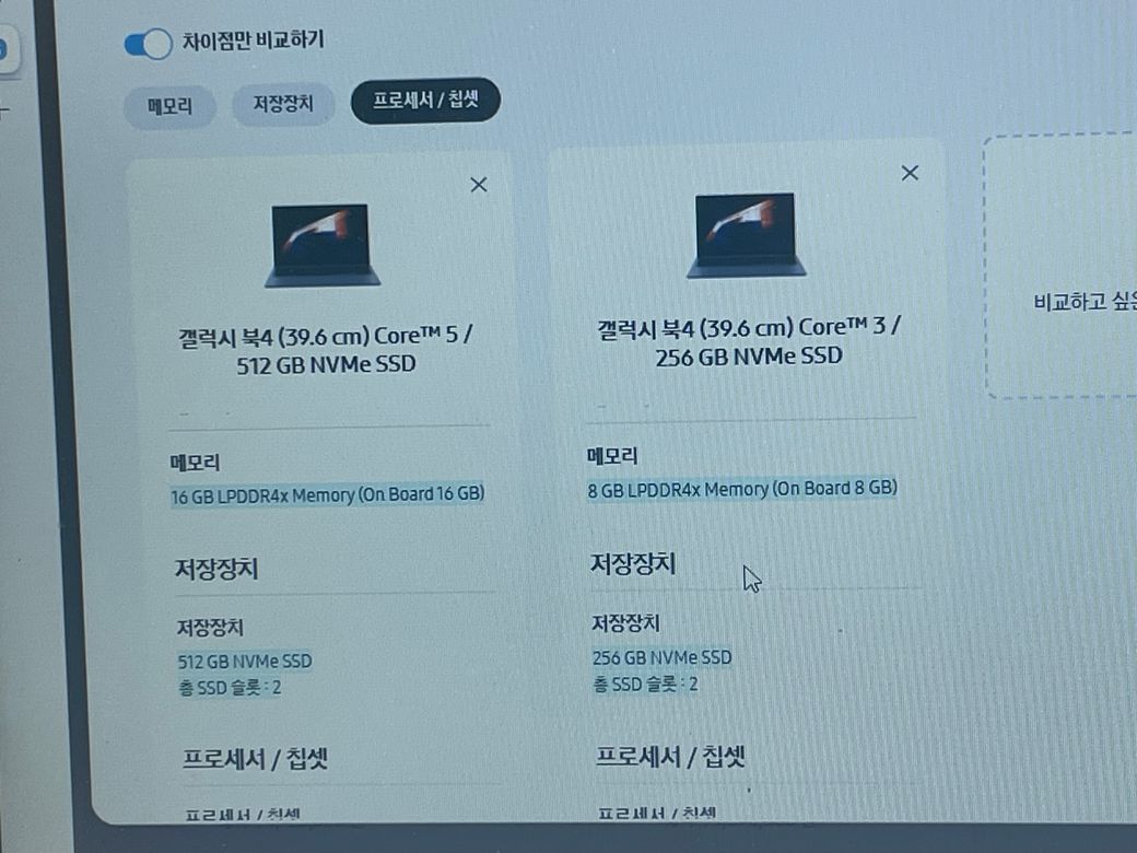 캡쳐해주신 것은 SSD 용량차이일 뿐이니 필요한 용량으로 구매하시면 됩니다.