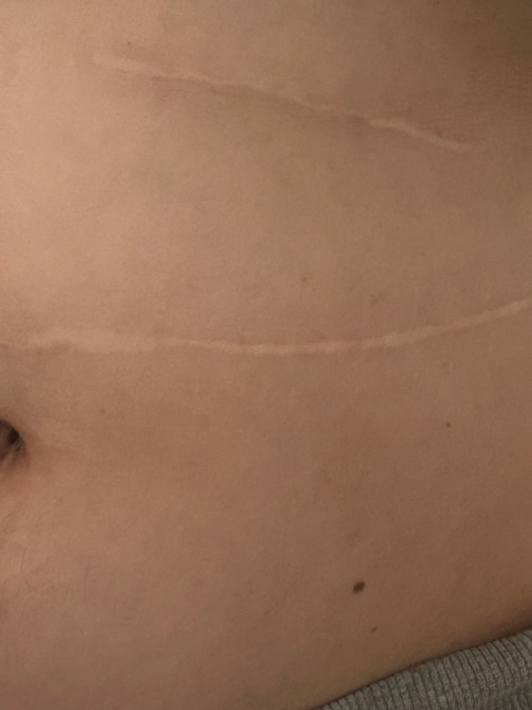 사진으로 보이는 흉터는 켈로이드흉터가 아닙니다. 몸에 부풀어오르는 흉터자국이 없다면 켈로이드 흉터는 없다고 볼 수 있습니다.