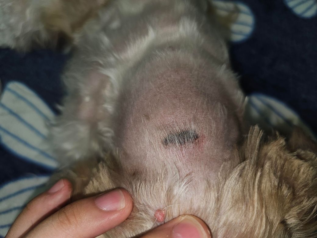 안구 적출과는 큰 상관이 없고, 아토피성 피부로 인한 피부증상일 가능성이 높습니다. 만약 가려워하거나, 붉은색 원형병변이 체표에 많이 보인다면 동물병원에서 진료와 처치를 받아보시는 것이 좋겠습니다.