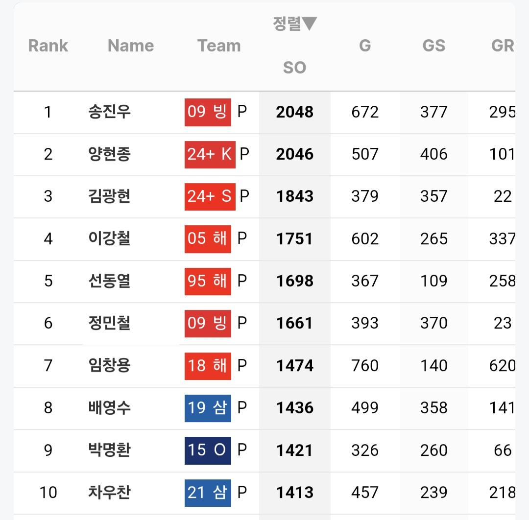 안녕하세요, 우리나라 프로야구 선수중 역사적으로 가장 많은 스트라이크를 던진 선수는 은퇴한 송진우 선수인데요. 2048개의 탈삼진을 기록해서 이부분 1위 입니다.