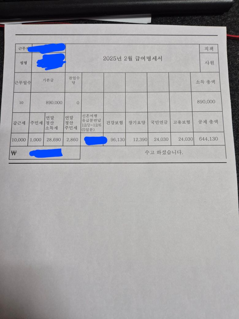 그만둔 후에 받은 월급명세서가 이상합니다 4대보험이 이렇게 많이 나오는게 맞나요? 그리고 연말정산 소득세는 무엇인가요? 이상한회사라서 나왔는데 끝까지 찝찝하네요