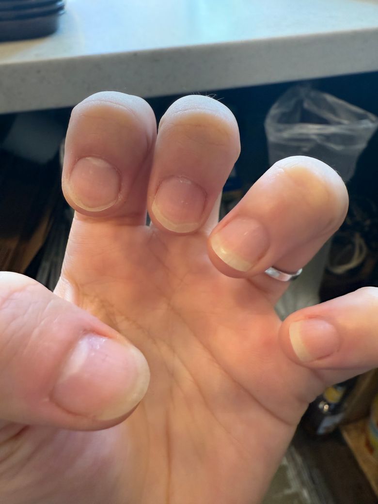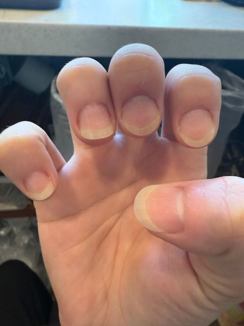 손톱을 맨날 뜯다가 24년만에 처음으로 기르는중인데 흰색부분이 너무 길어서 꺾일것같아서 무섭습니다…