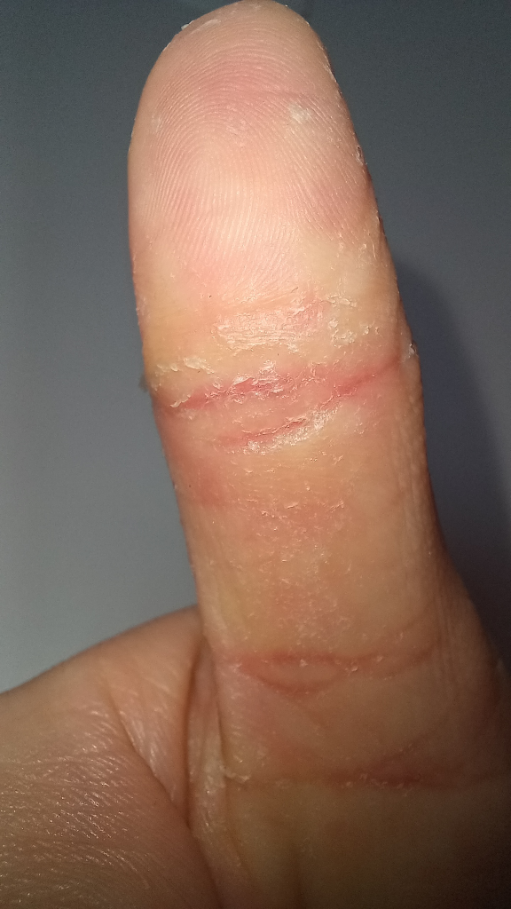 설거지를 한 것도 아닌데 어릴 때부터 주기적으로 이런 심한 습진이 약지, 새끼손가락을 제외한 곳에 생겨서 피부과에서는 주부습진이라고 락티케어와 하이트리를 처방해줬습니다.