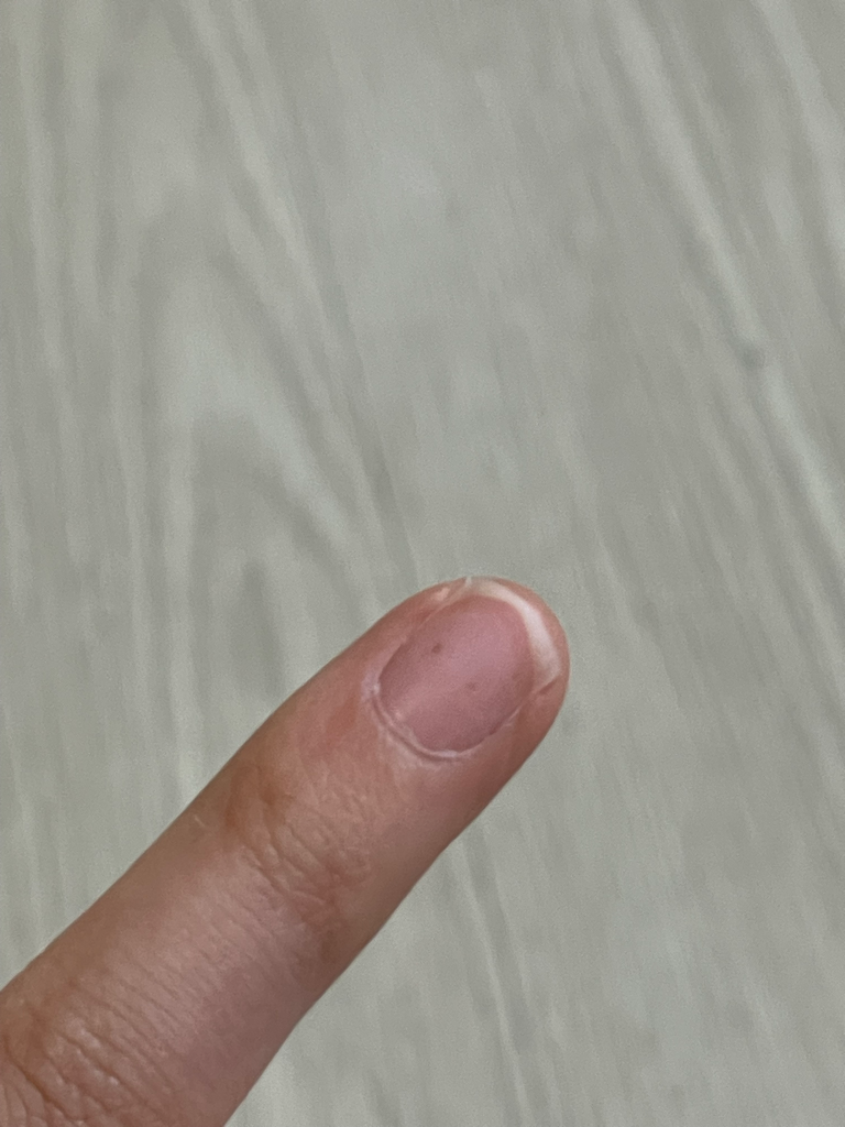 모르는 사이에 발생한 출혈로 인한 증상일 수 있으며, 비타민 불균형이나 결핍 같은 영양의 문제일 수도 있습니다. 드문 가능성으로 흑색종일 수도 있습니다. 일단 경과를 지켜보시되 보다 장기간 사라지지 않으면 피부과 진료를 받아보시길 권고드립니다.