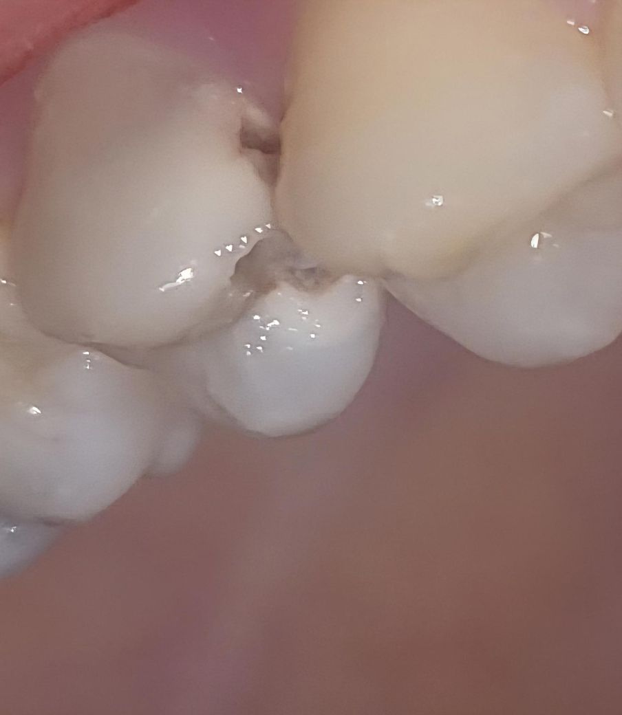 해당 이빨 사진이고 작은어금니가 썩은지 1년 좀 넘었는데 제가 돈이없어서 치과를 이번년도 10월에야 갈 수 있을 것 같은데.... 크라운으로 가능할까요? 발치해야할까요ㅠㅠ