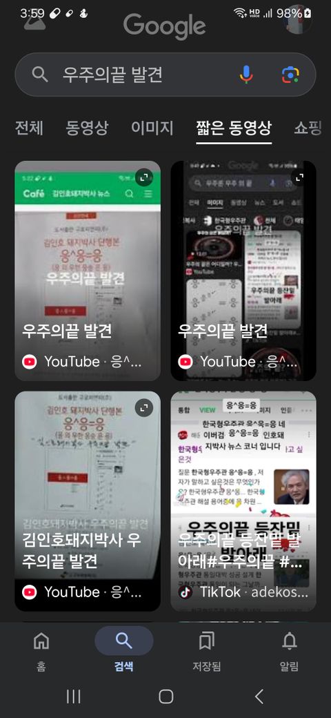 우주의끝 발견 구글 짧은동영상 검색 내용 둘러보세요.김인호돼지박사 우주의끝 발견 내용 보실 수 있습니다.한국형우주관 응^응=응 우주의끝 추적도구 응 의 무한 응승 은 응 한글 우주계산식 내용 보실 수 있습니다