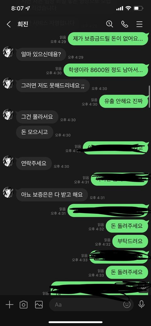 사기를 당하고 협박을 당하고 있습니다.