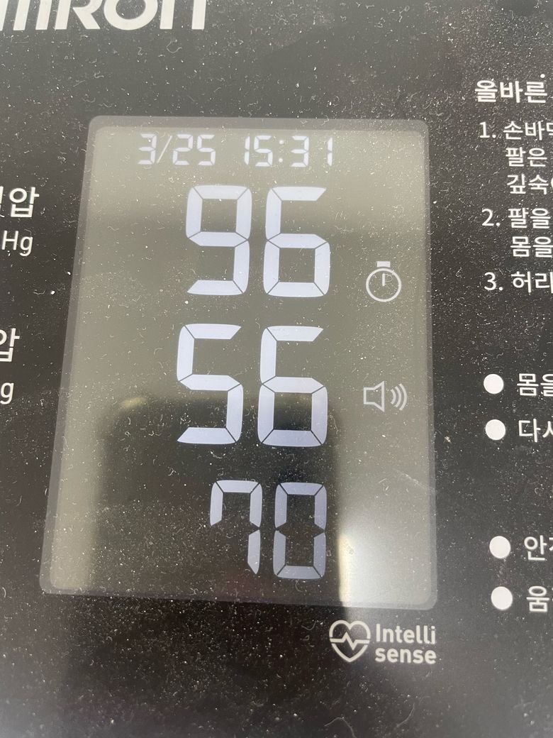 병원을 가봐야할까요? 오늘아침 일어나서 좀있다 쟀을때. 88/66 인데 지금은 물 마시고 올리브유랑 마누카꿀 좀 먹고 96/69입니다