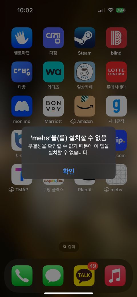 하여, 우선 앱설정 - 일반 - VPN기기관리 - 사용설정허용 해보시고 안되시면 답글 부탁드립니다.