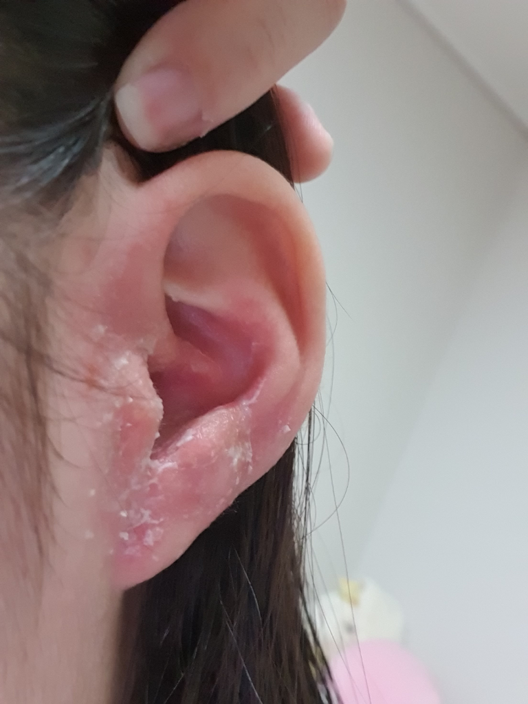 귀 피부 때문에 고생하시고 계시군요.