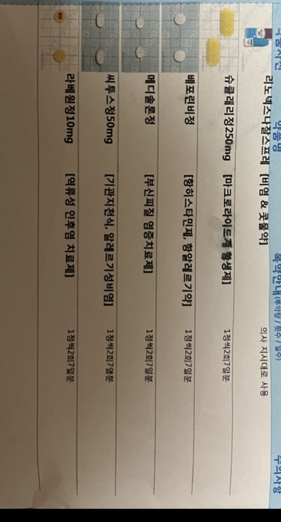 두번째 사진이 첫일주일 처방 복용약이고