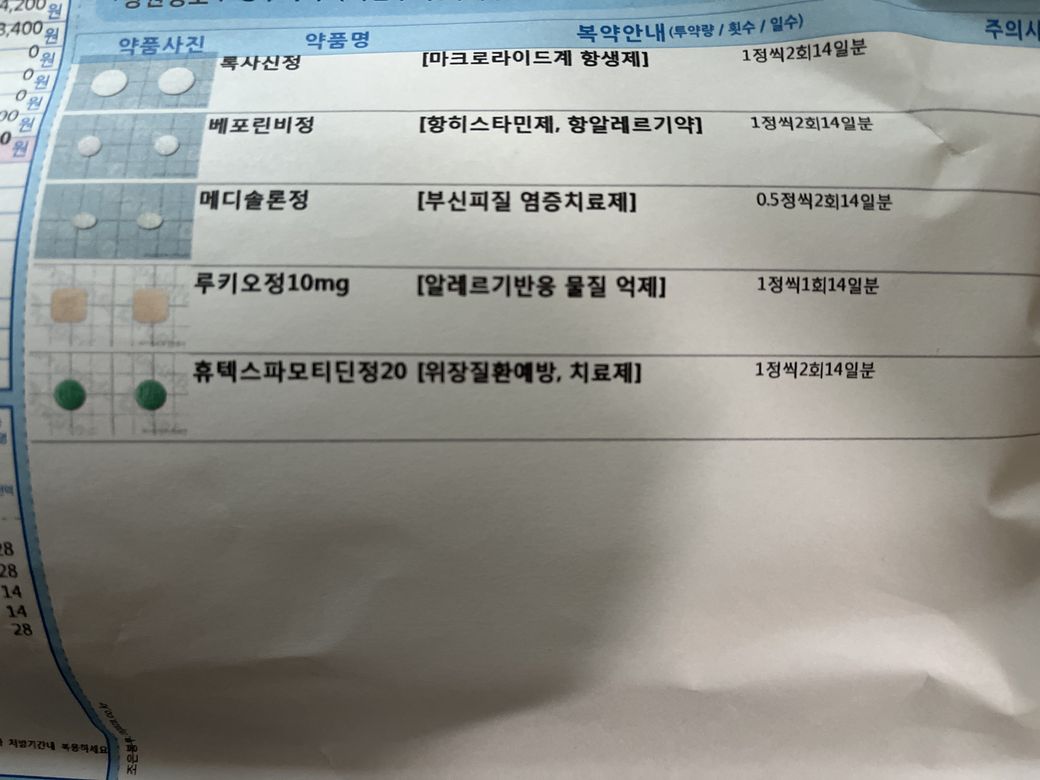 일주일은 복용하고 나머지 일주일치는 상비약 개념으로 심할때만 먹으라고 2주치 처방받았는데요 제가 총 먹는 약은 2주일인데 항생제,스테로이드 모두 포함입니다