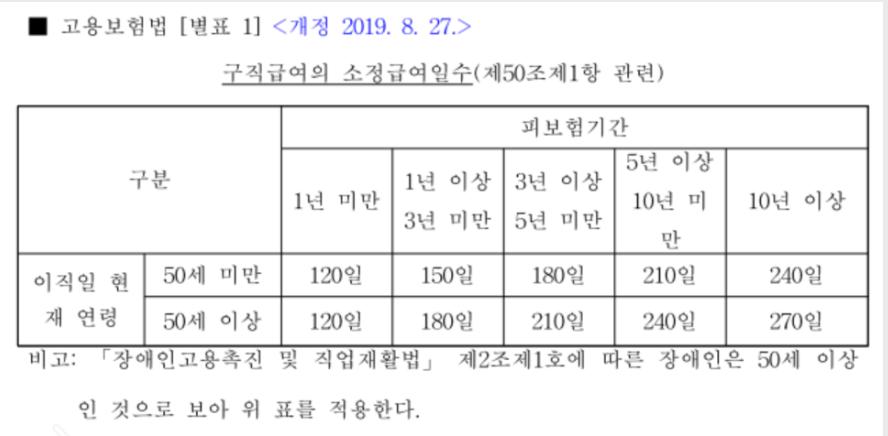 실업급여 피보험기간과 수령가능 일 수 질문