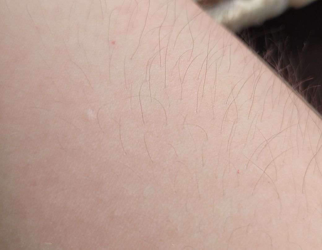 팔에 작게 빨간 점들이 있음?