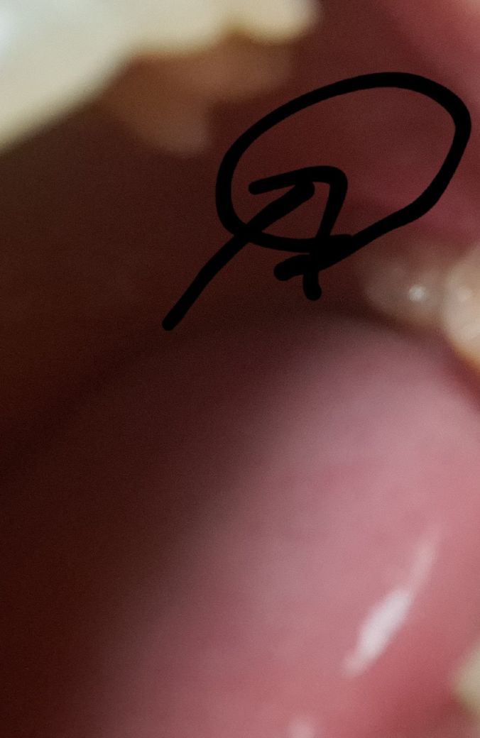 현재 사진으로는 어떤 상태인지 전혀보이지 않습니다. 다만 흰색의 동그라미라면 여러가지 구내염 및 연조직 질환일 가능성이 있습니다. 대부분의 구내염은 2주 안에 회복되는 특성이 있지만 현재 말씀하시는 흰색 부분이 2주가 지나도 회복되지 않는다면 치과 방문 후 감별진단을 반드시 받아보셔야 합니다.