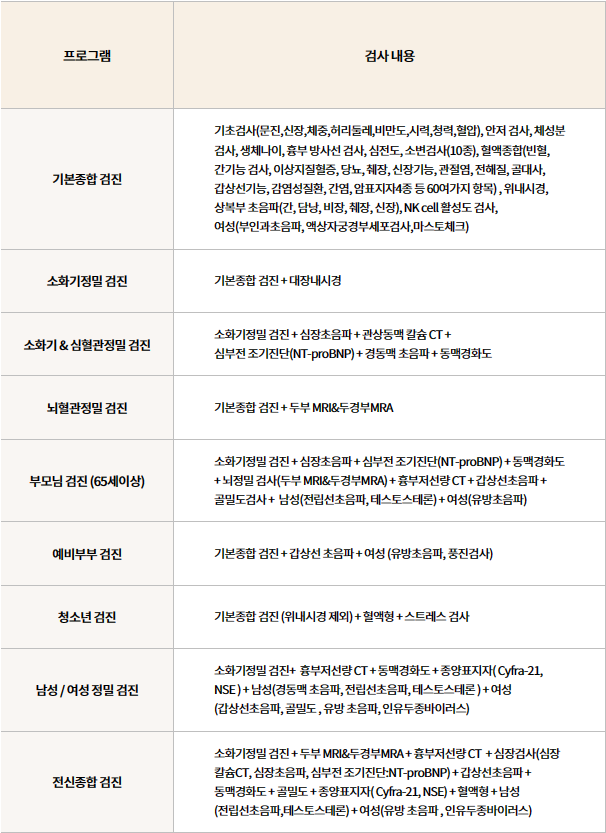 소화기 + 심혈관 정밀 검진으로 왠만한 질환들이 커버 되는 것으로 보입니다. 비용효과적인 부분을 잘 따져서 선택하시면 되겠습니다.