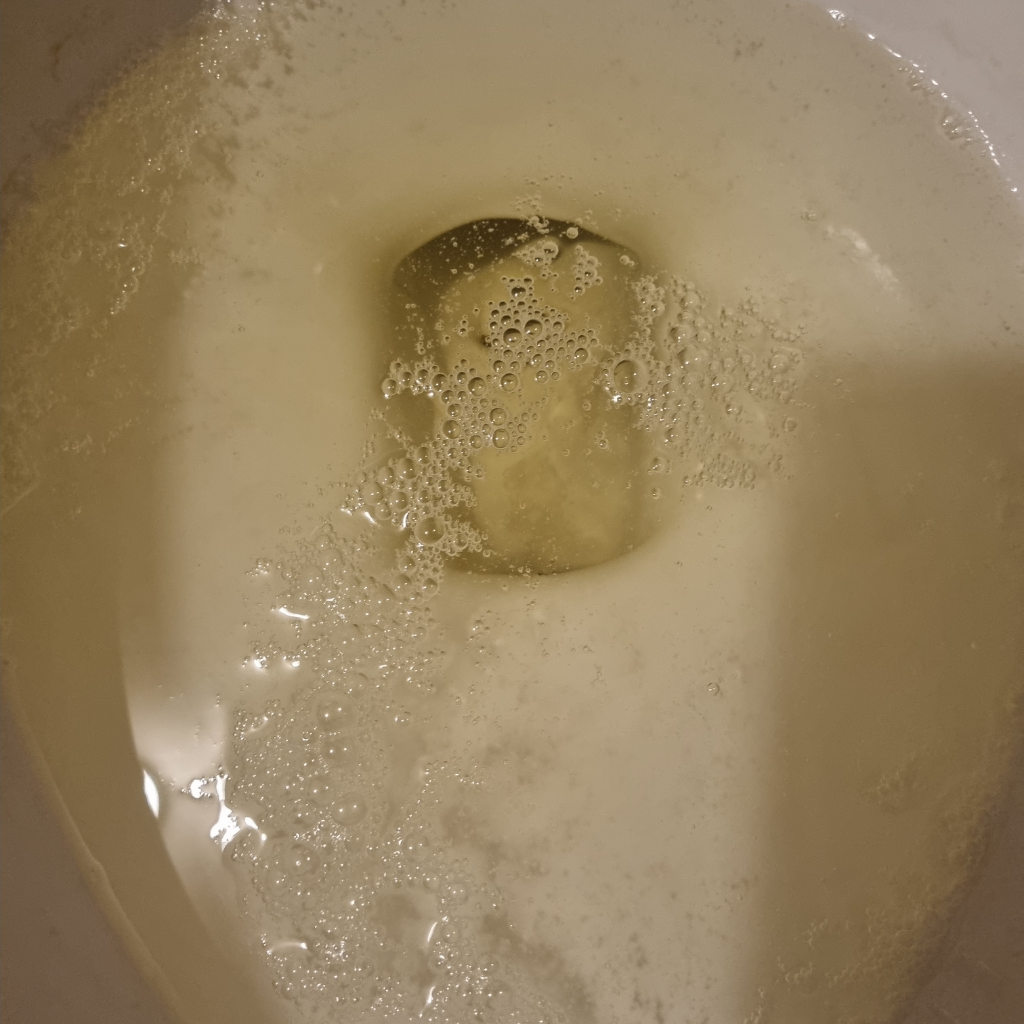 거품뇨가 있으면 당뇨나 단백뇨의 가능성을 의심해보아야 합니다. 사진의 소견을 볼 때에는 딱히 그 정도로 보이지는 않지만 걱정된다면 소변 검사를 받아보시길 바랍니다.