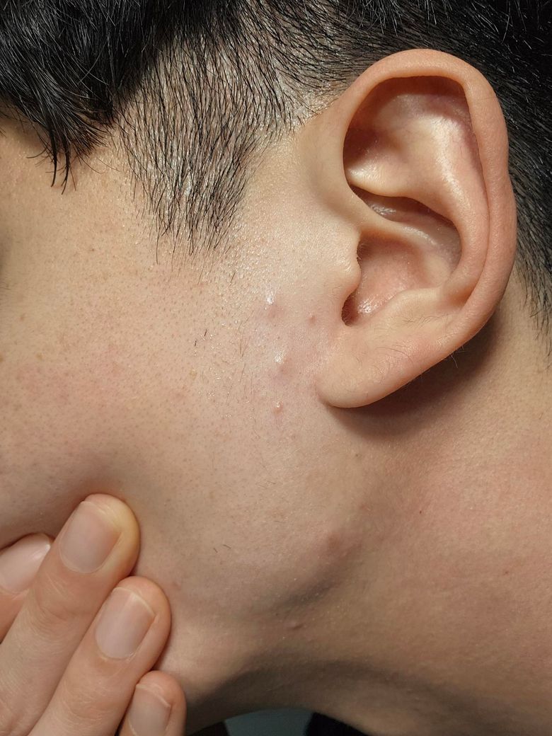 첫째, 면도·마찰과 연관된 모낭염 또는 면도 후 자극성 피부염입니다. 턱선과 귀 앞은 면도기 자극, 마스크 끈 마찰, 땀과 피지로 인해 모낭 주변에 염증이 잘 생기는 부위입니다. 통증이 거의 없고 작게 오돌토돌 올라오는 형태로 시작하는 경우가 흔합니다.