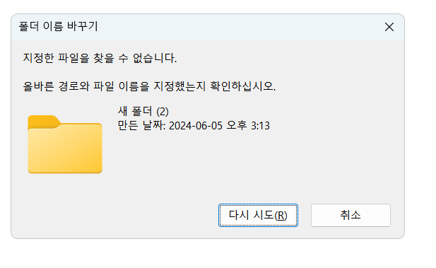 폴더 이름을 변경 하려는데 저렇게 창이 뜨시나보네요