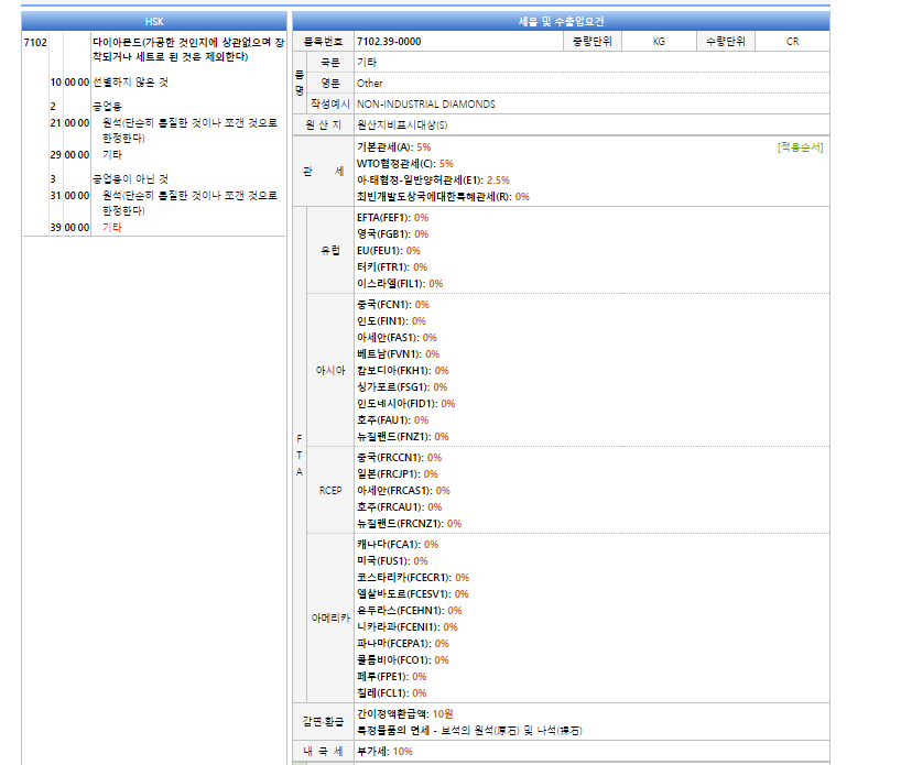 추가적으로, 다이아몬드와 같은 물품들은 킴벌리 프로세스에 따라서 수입할 수 없는 국가들이 있기에 이러한 부분도 확인이 필요합니다.