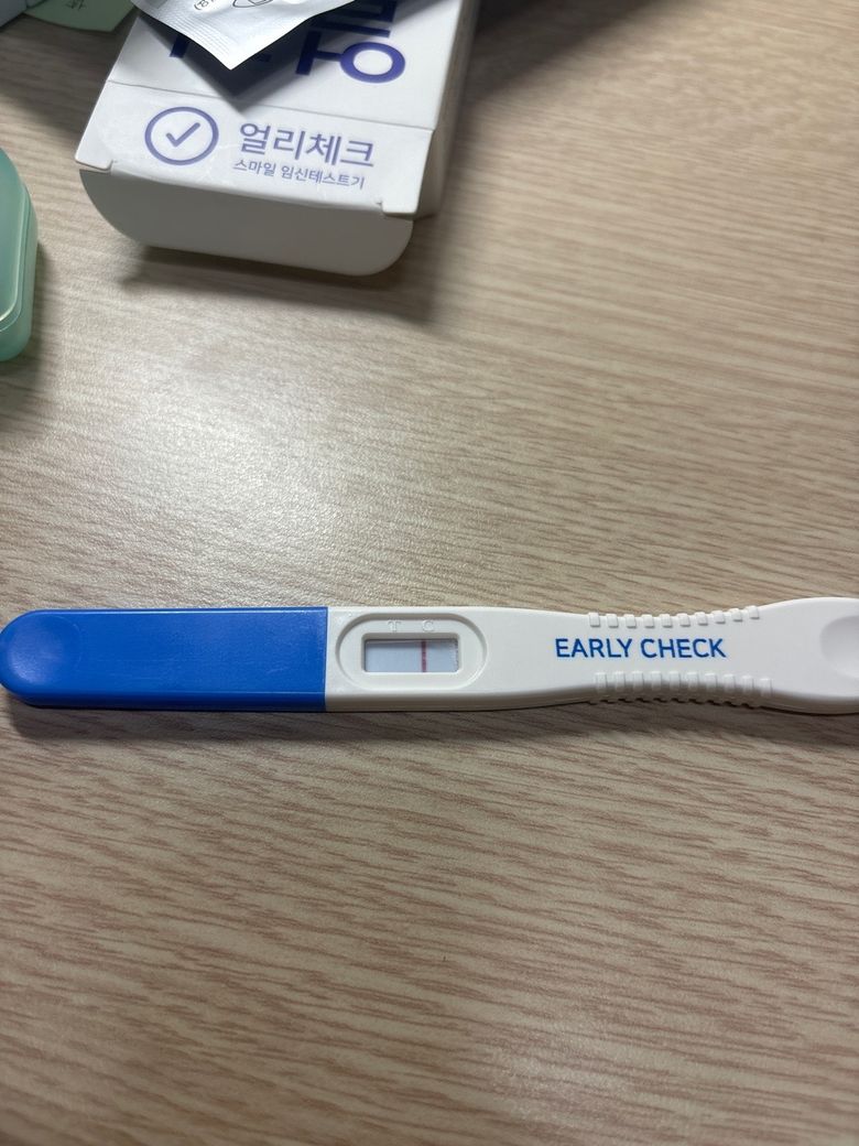 현재 상황에서는 다시 하루 정도 기다린 후, 아침 첫 소변으로 새로 검사를 해보는 것이 좋습니다. 만약 두 번째 테스트에서도 희미한 선이 보인다면, 몇 일 뒤에 다시 테스트를 하거나, 임신 가능성을 확인하기 위해 병원을 방문하는 것이 필요할 수 있습니다