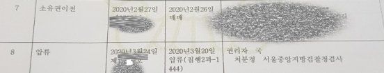 8번 압류는 2020년 3월 14일.