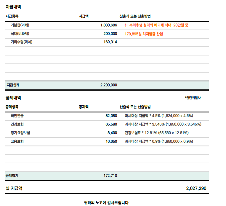 질문자님이 실제 최저임금 이상의 임금을 받고 있는 것으로 보이고 비과세로 인하여 4대보험 보수월액이 200만원으로