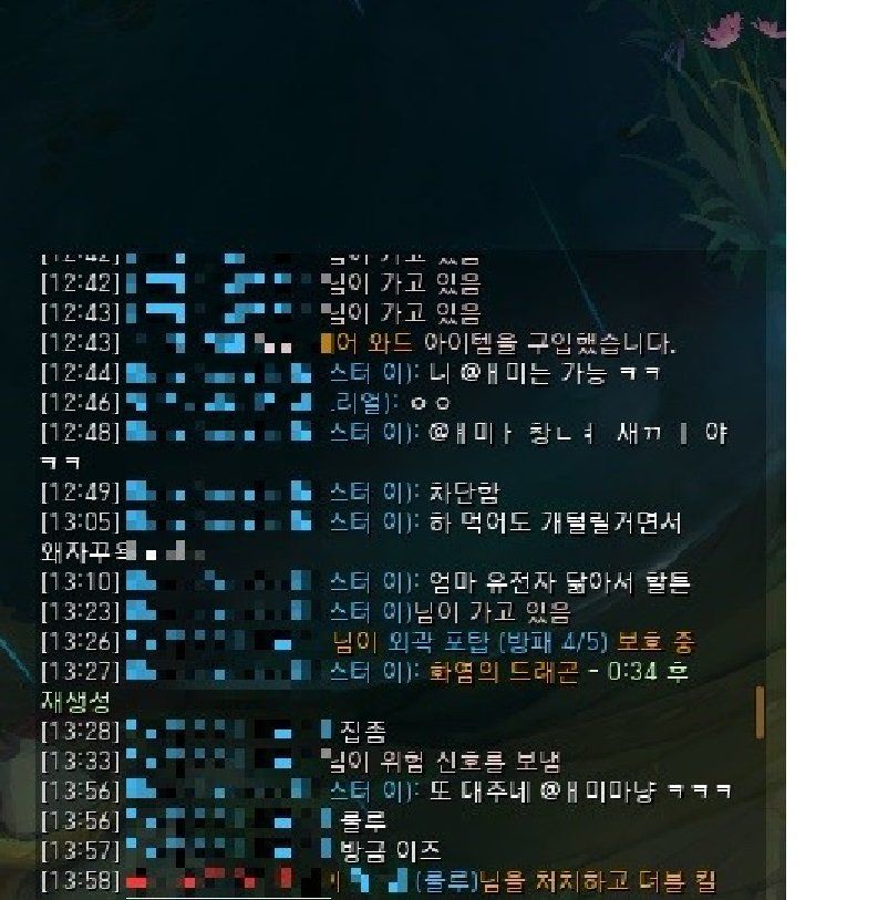 롤 게임내 채팅은 이제 팀원끼리만 가능하구요 채팅내용은 이렇습니다.
