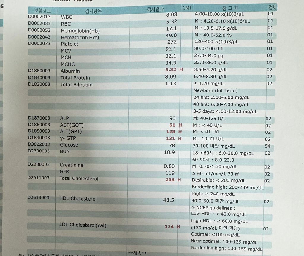 나이가 25이면 약물 치료보다는 생활 습관 조절을 빡시게 해보는 것을 권유드립니다. 체중을 빼면 모든 것이 해결될 것 같아요. 중성지방이나 콜레스테롤도 떨어질 것이고 간수치도 좋아질 겁니다. 당연히 지방간도 좋아질 거에요. 주 1회도 가급적 안 드시는 쪽으로 가면 더 좋습니다. 그래야 체중과 간수치가 확 줄어들 겁니다. 간장약은 임시 방편이고 궁극적인 치료는 체중감량입니다. 3개월 정도만 열심히 관리하시고 재검사 해보세요.