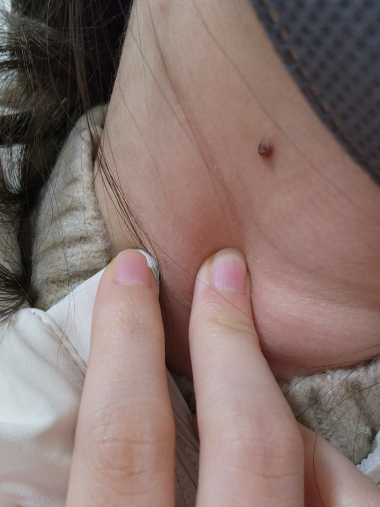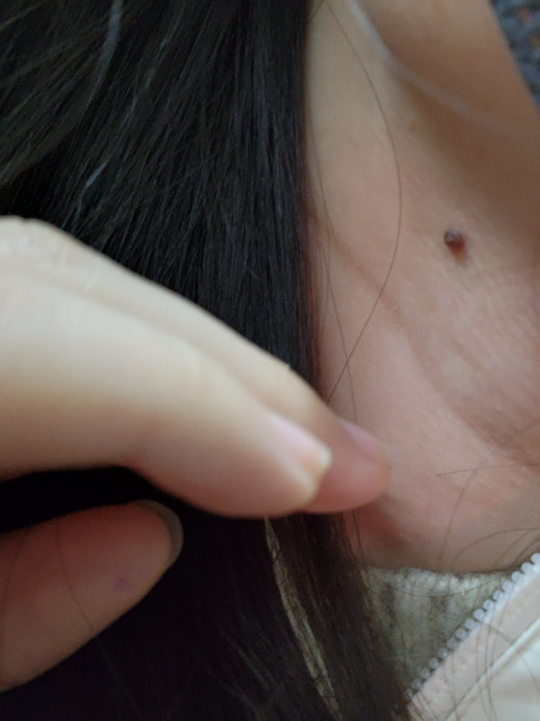 일반적인 점들은 튀어나오지 않은 거 같은데 이건 종기(?)처럼 튀어나와 있어 여쭈어봅니다. 목 쪽을 만질 때마다 거슬려서요...