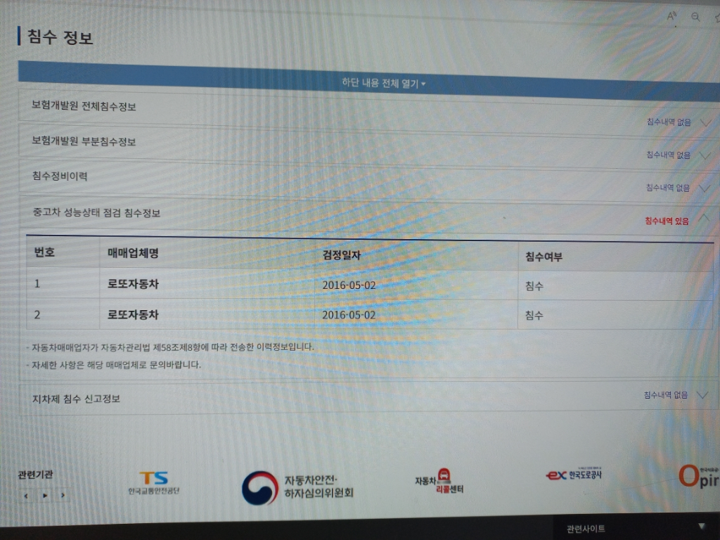 근데 제가 타고다니던 중고차가 침수이력이 존재한다고 연락이왔습니다.