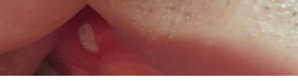 구내염일 가능성이 높아 보입니다. 대개 그냥두면 저절로 없어집니다. 건드리지 않고 그냥 두는 것을 권합니다.