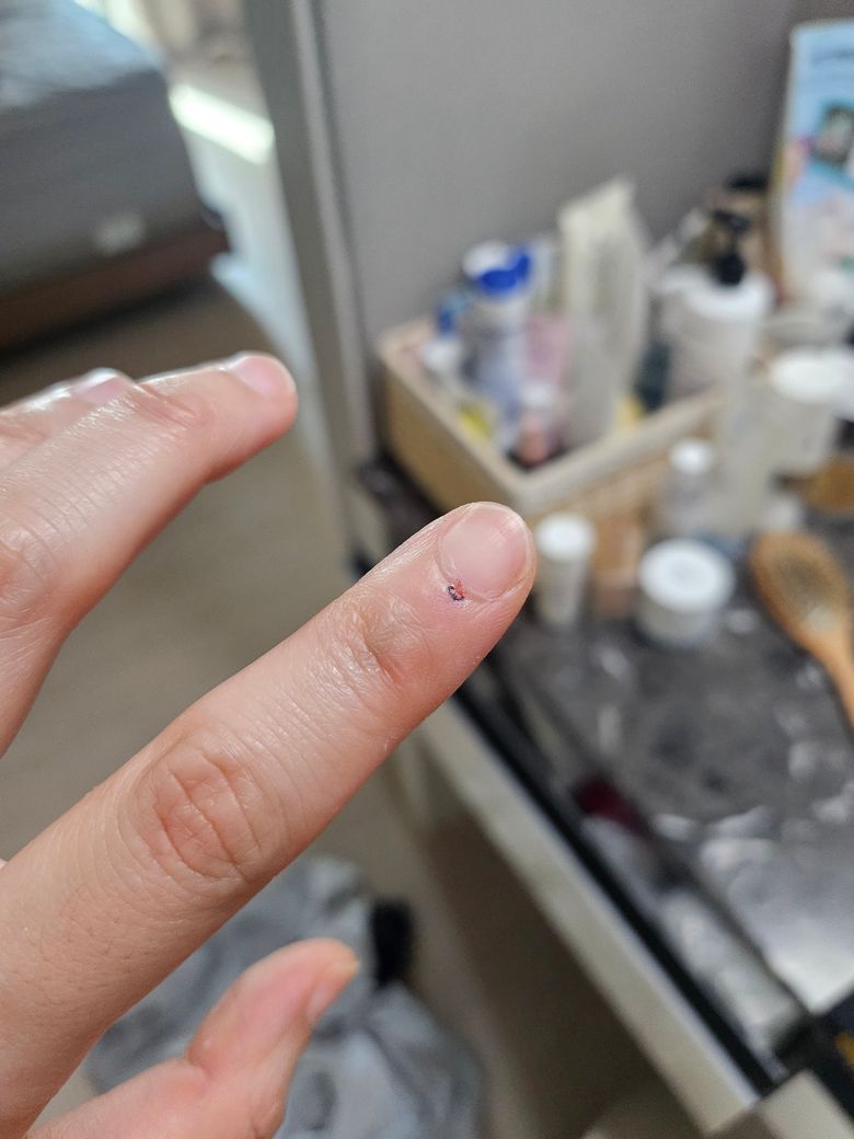 사진처럼 피가손가락 살안에 고였다가 굳었어요.