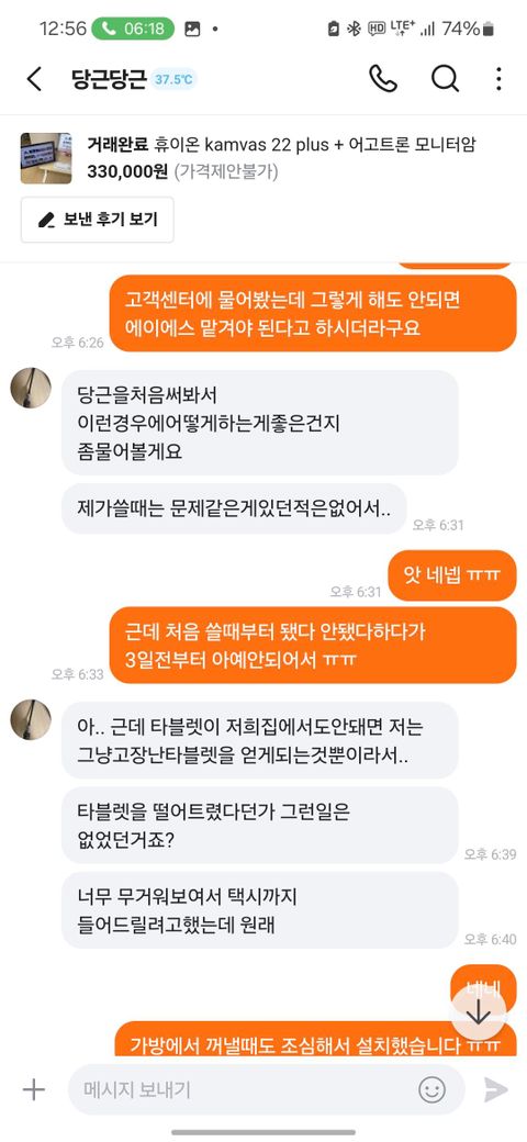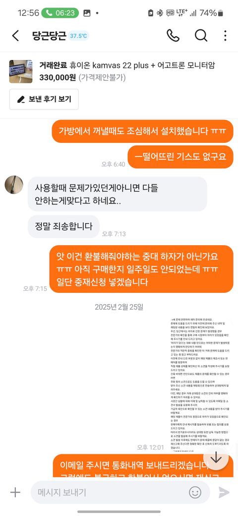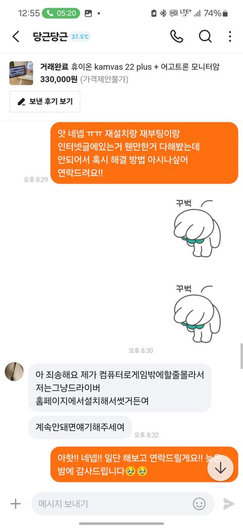 제가 2월 12일 경 웹툰 작가들이 주로 쓰는 타블렛을 직거래로 구매했습니다