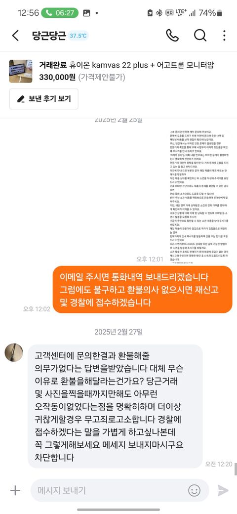 당근마켓 환불처리로 경찰서 가는게 맞나요?