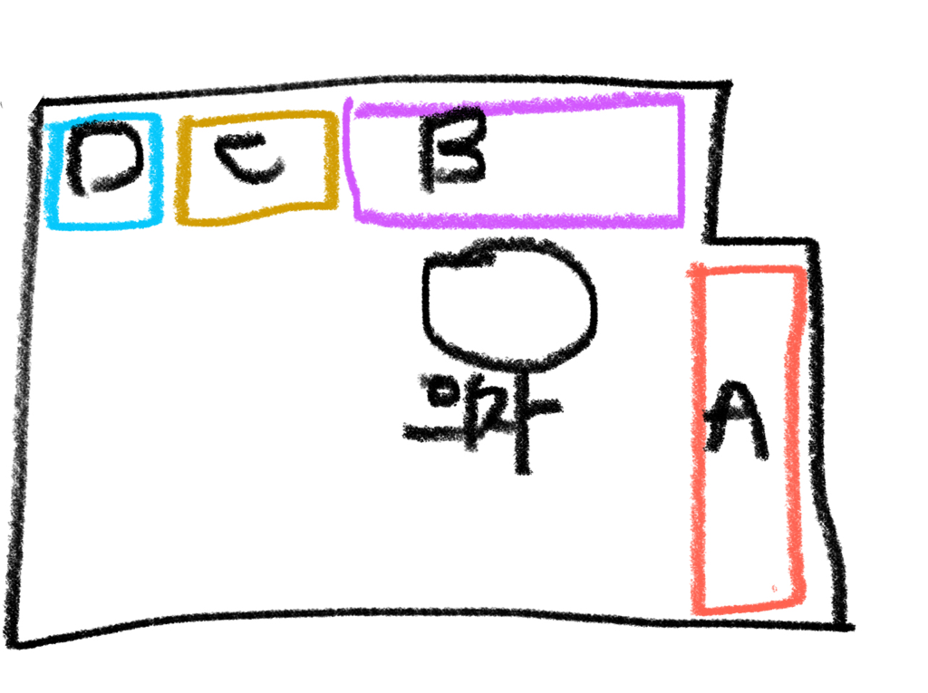 대충 이렇게 생긴 구조입니다. 창고로 쓰이던 방을 그냥 제가 서재로 쓰는 중이에요. 그림상으로는 널널해보이지만 정말 좁습니다.