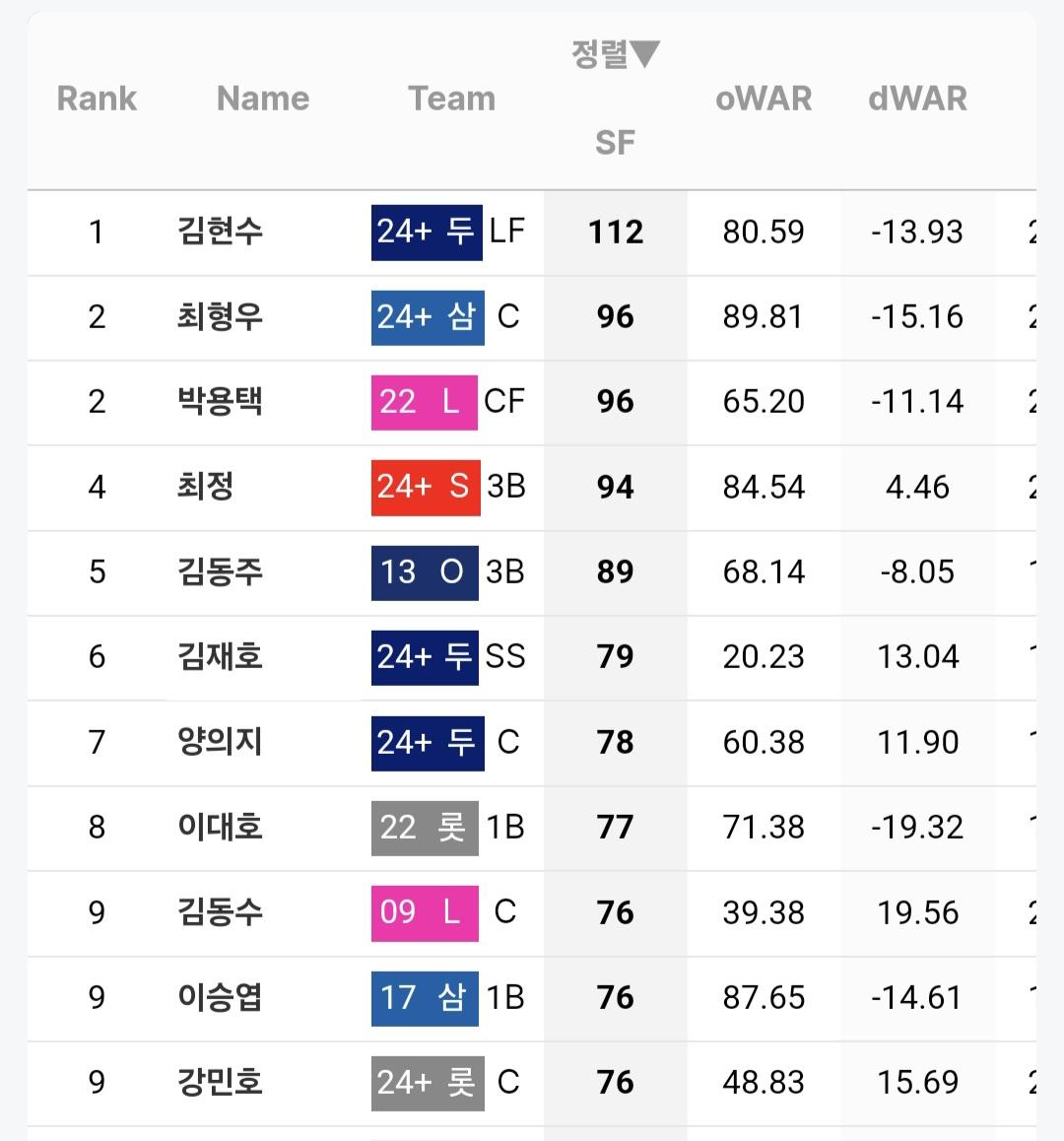 112개의 희생플라이를 기록하고 있습니다.